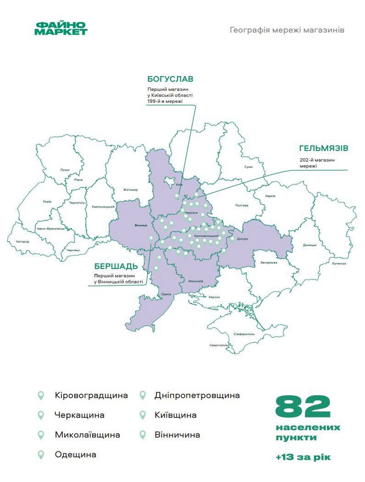 Третє грудневе відкриття відбулося у Кропивницькому — на вул. Яновського, 65 В. Магазин розташований у житловому комплексі, який активно заселяється, тож уже зараз орієнтований на формування сталого потоку постійних покупців. Незважаючи на локальні особливості, усі три локації відкрито в межах єдиного формату мережі.