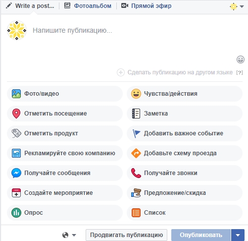 Меню для публікацій в Facebook також істотно розширилося – ще більше можливостей для креативу та комунікації з клієнтами.