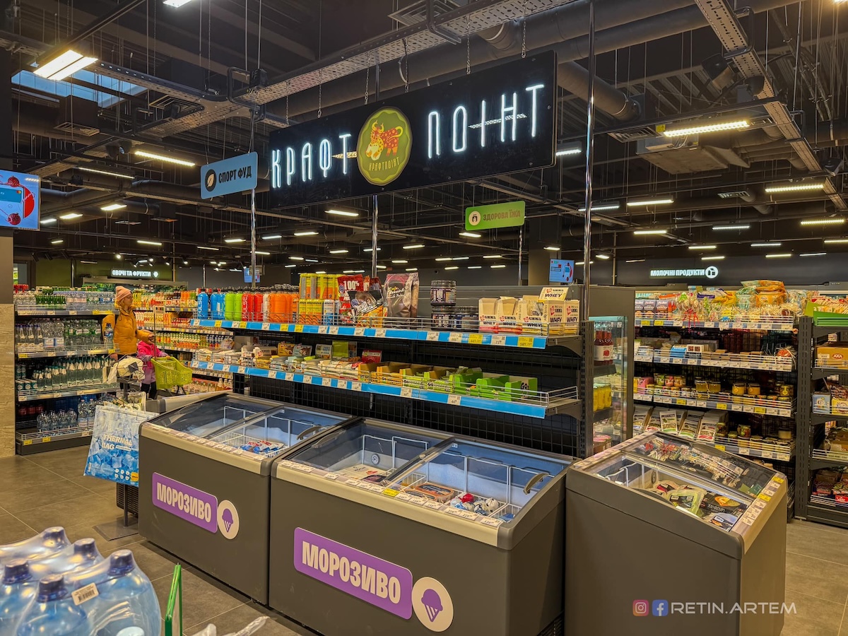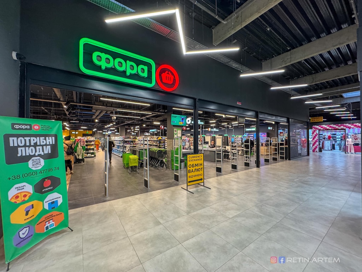 Продуктовим якорем комплексу є супермаркет Фора в сучасному форматі з оновленим дизайном та асортиментом.