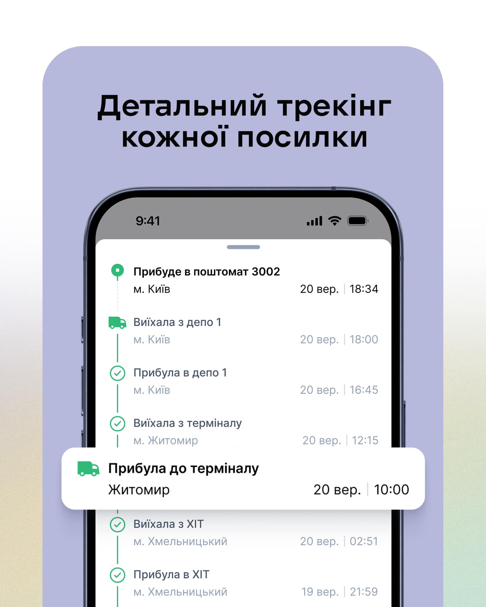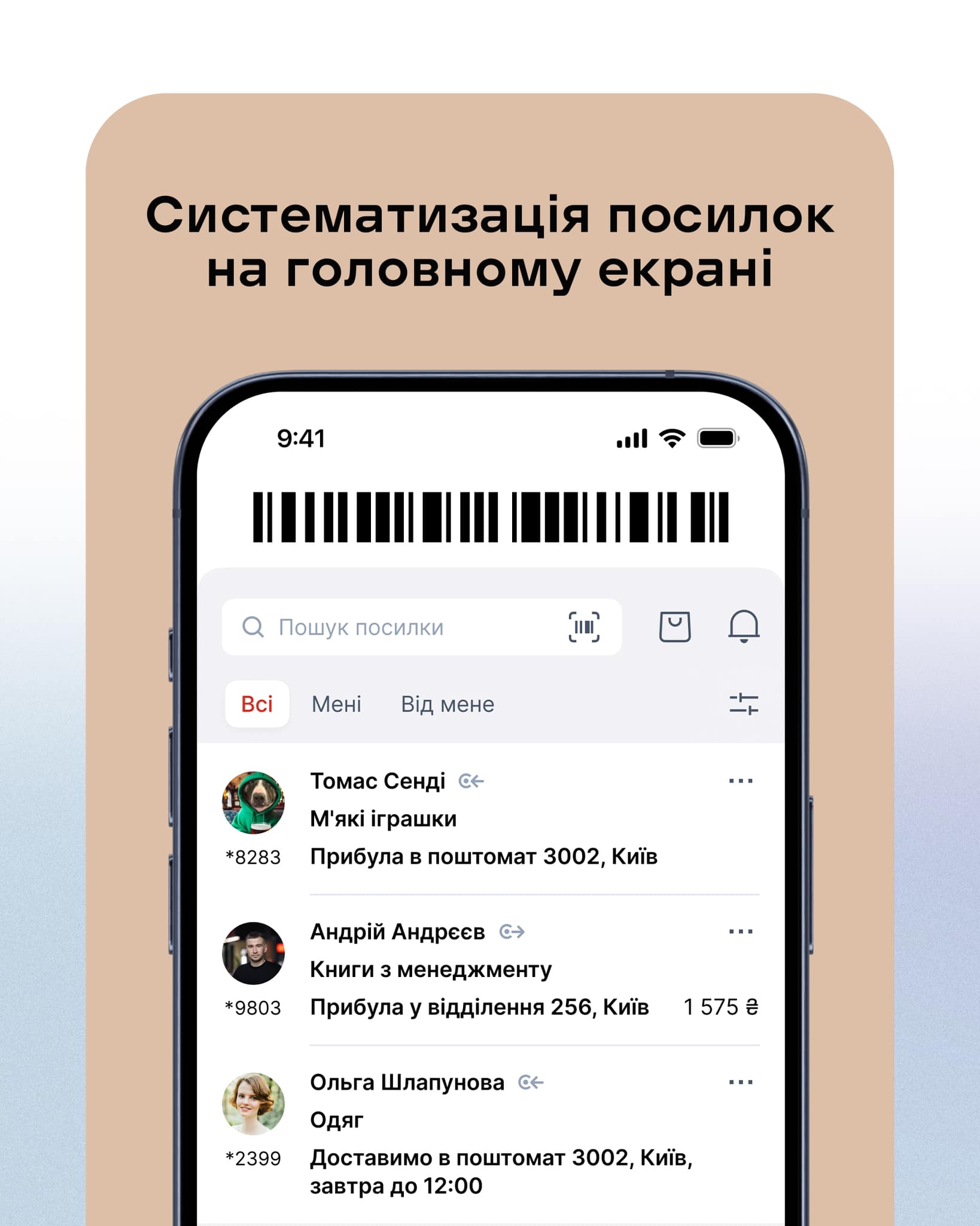 Ще удосконалили функцію відстеження посилок, тобто можна в реальному часі спостерігати її пересування, можна сортувати посилки на «мені», «від мене», «всі», спростили отримання посилки у поштоматі та додали можливість отримати її у ньому офлайн.