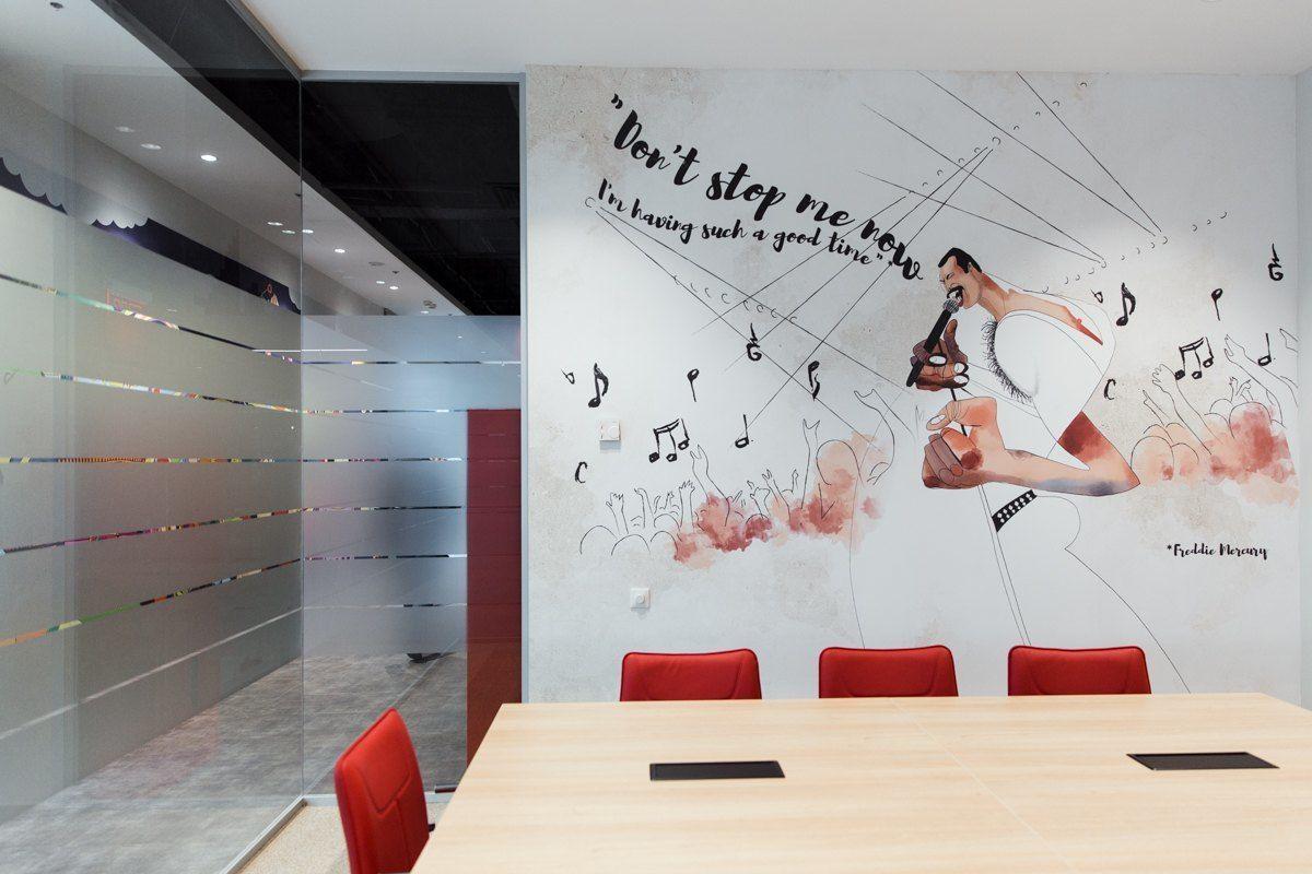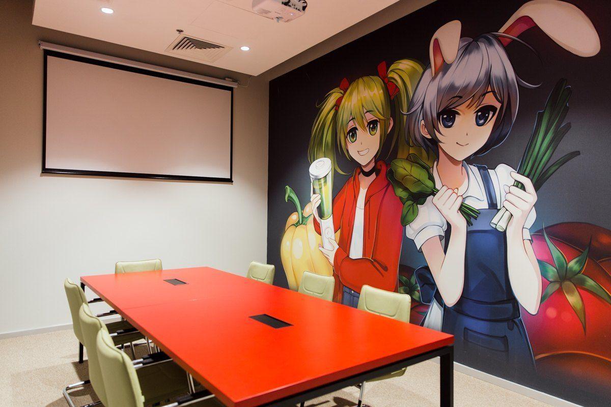 Усі переговорні теж стилізовані мотивами із супермаркетів мережі. Вони мають назви відповідно до своєї візуалізації. Наприклад: «переговорна Фредді Мерк’юрі», «переговорна комікс», «переговорна манга».