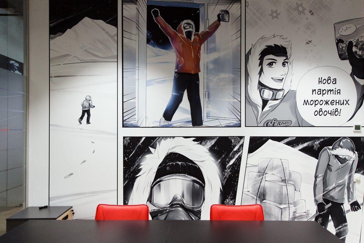 Комікси на стінах, їдальня, кафе та креативні кімнати переговорів, жарти та мотиви найуспішніших магазинів: що ще можна зустріти у новому офісі мережі Сільпо у київському торгівельно-офісному центрі Silver Breeze.
