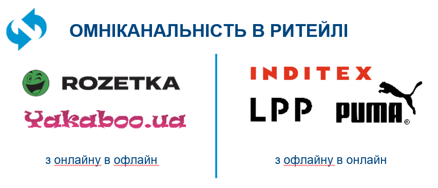 Окремо варто відзначити вихід класичних рітейлерів в онлайн. Протягом ІІІ кварталу про запуск інтернет-магазинів в Україні оголосили Inditex (бренд Zara), LPP (Reserved, Sinsay, Mohito) та Puma. Онлайн-рітейлери продовжують посилювати свою присутність офлайн. Інтернет-гіпермаркет Rozetka відкрив свою дев’яту локацію в ТРЦ Aladdin, а найбільший в Україні книжковий інтернет-магазин Yakaboo, вперше відкрився в офлайн-форматі в приміщенні Головпоштамту, на Хрещатику.