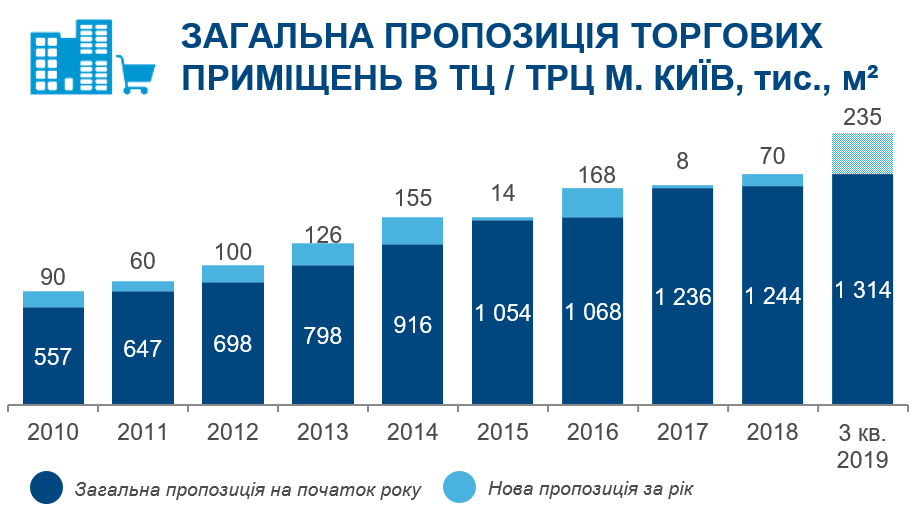 В умовах стабілізації економічної ситуації в країні та зростання індексу споживчих настроїв до рівня 2007 року, ринок торговельної нерухомості Києва готується до суттєвого насичення якісними об’єктами протягом 2019-22 років. За заявами девелоперів, у найближчі три роки обсяг якісних торговельних площ в столиці може збільшитись на 40%, що спричинить зростання конкуренції та призведе до перерозподілу потоків відвідувачів діючих об’єктів.