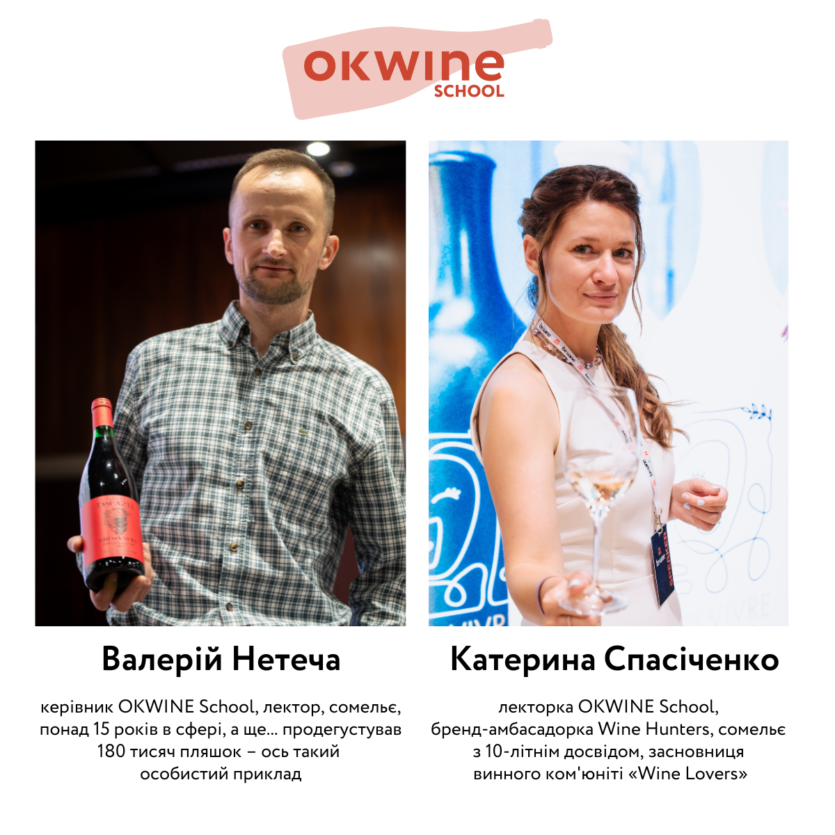 Проєкт OKWINE School розпочав свою роботу у червні 2019 року. Години лекцій, шалених дегустацій по 20, а то й більше зразків, випробування рецепторів наосліп, пошуки ідеальної гастрономічної пари. Так, звучить потужно, але процес безперервних тренінгів по силам лиш тим, хто горить своєю справою. Ось так і народжується якісний сервіс OKWINE. Навчальні програми розроблені й постійно вдосконалюються професіоналами своєї справи, сомельє з багатолітнім досвідом та безпосередньо головними лекторами школи – Валерієм Нетечею, керівником OKWINE School, та Катериною Спасіченко, бренд-амбасадоркою компанії Wine Hunters.