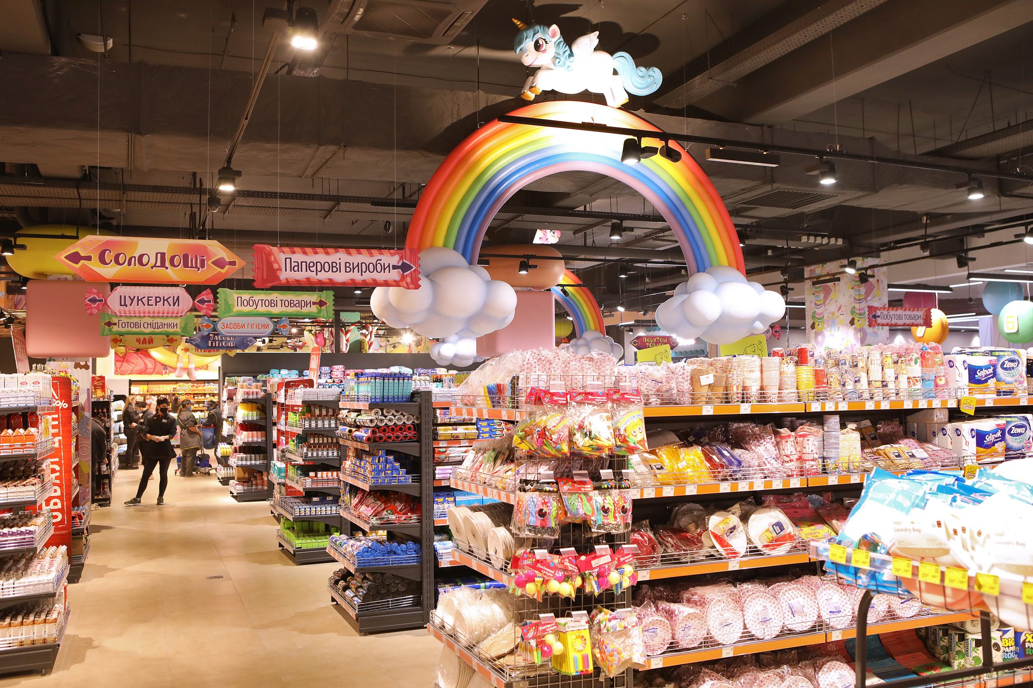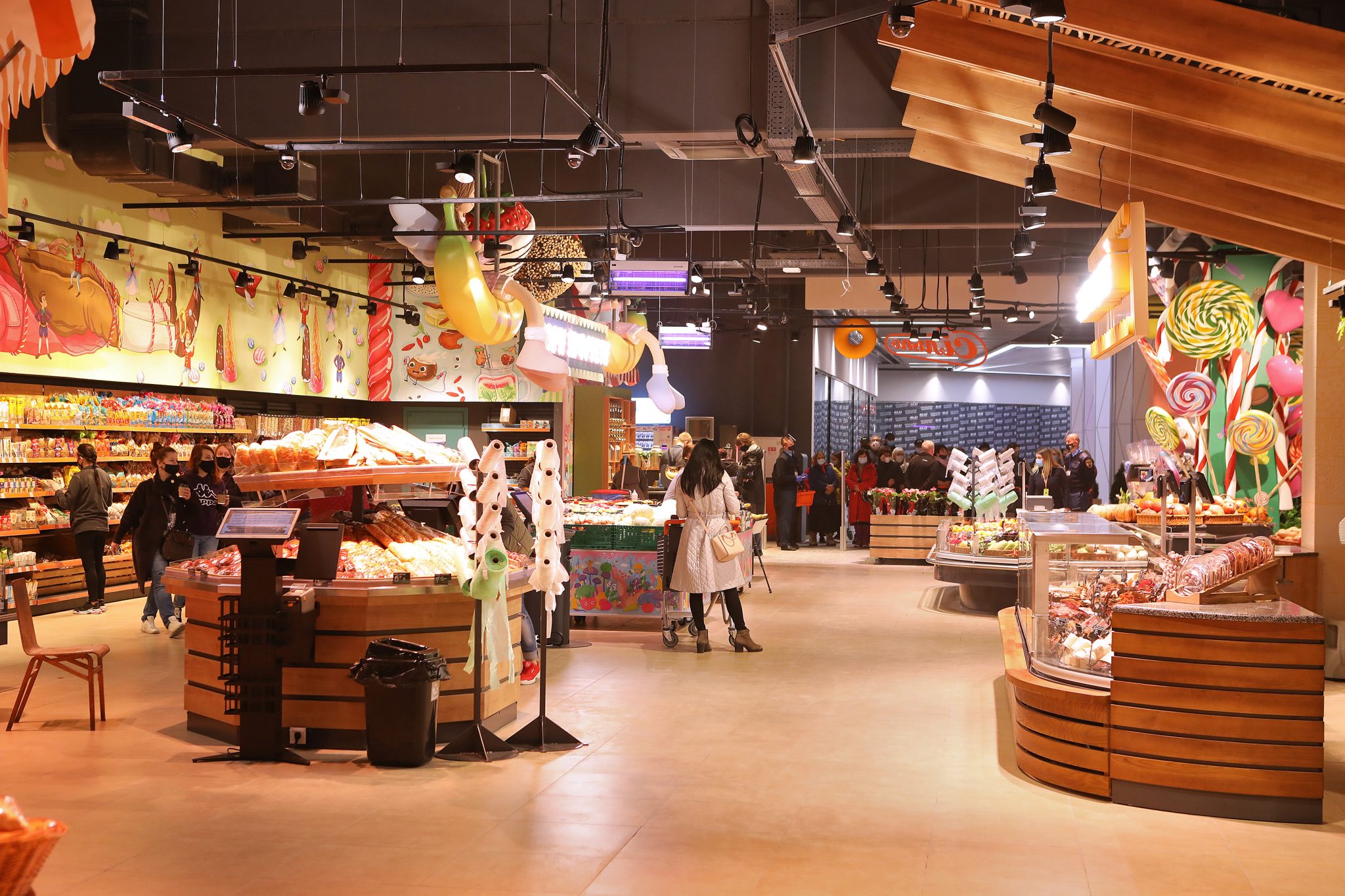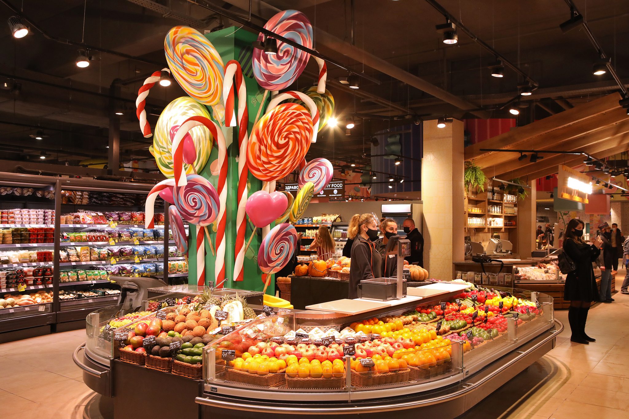 «У місті солодощів ми не могли відкрити жоден інший Сільпо, тільки Candy Shop. Ми згадали всі легендарні цукерки – Білочку, Рачків, Метеор, Пташине Молоко – а потім наші художники переосмислили їх, і створили особливі солодкі ілюстрації в торговому залі. Звичайно, на цьому ми не обмежилися і додали інші класичні та сучасні солодощі до декору. Так у нас з’явився найсолодший супермаркет у всій країні», – коментує Катерина Огуряєва, директор з маркетингу мережі Сільпо.