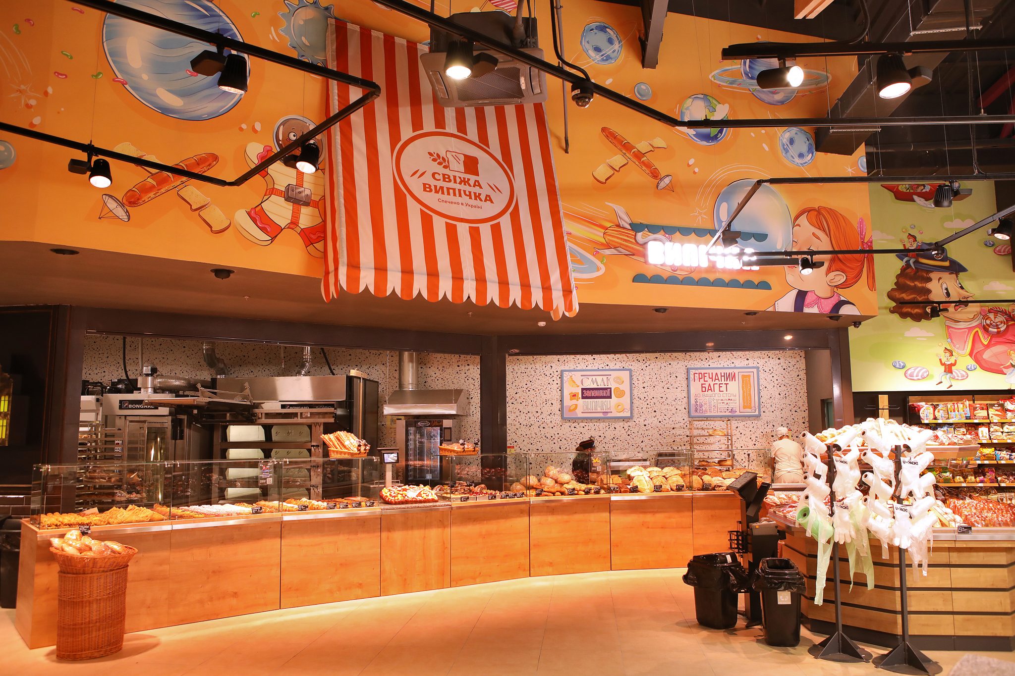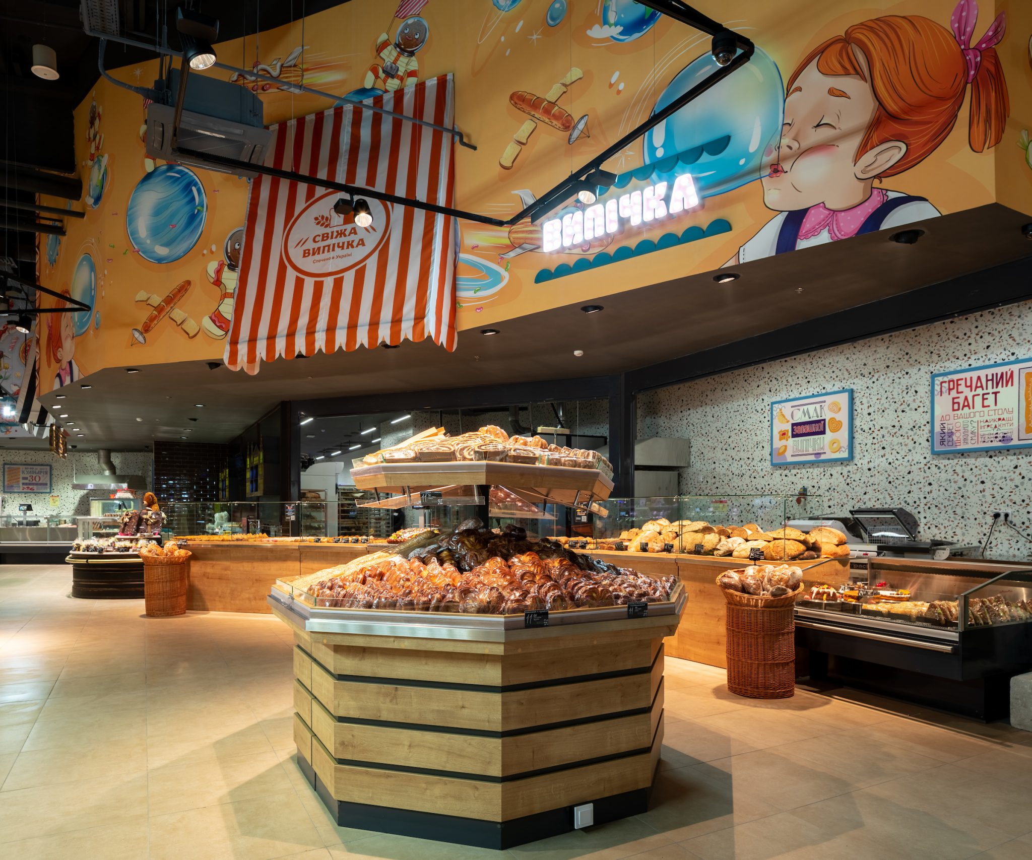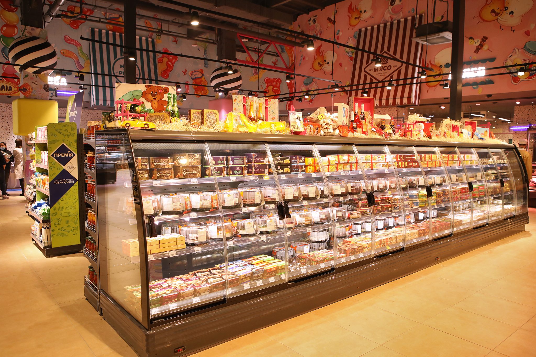 «У місті солодощів ми не могли відкрити жоден інший Сільпо, тільки Candy Shop. Ми згадали всі легендарні цукерки – Білочку, Рачків, Метеор, Пташине Молоко – а потім наші художники переосмислили їх, і створили особливі солодкі ілюстрації в торговому залі. Звичайно, на цьому ми не обмежилися і додали інші класичні та сучасні солодощі до декору. Так у нас з’явився найсолодший супермаркет у всій країні», – коментує Катерина Огуряєва, директор з маркетингу мережі Сільпо.