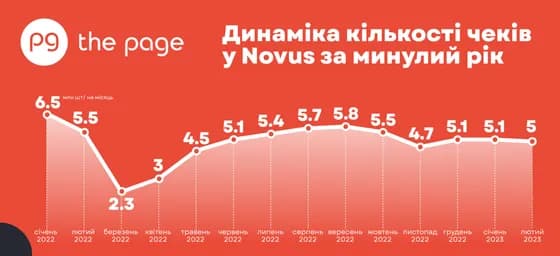 Як змінювалася кількість чеків у магазинах Novus у 2022-2023 роках. Інфографіка The Page