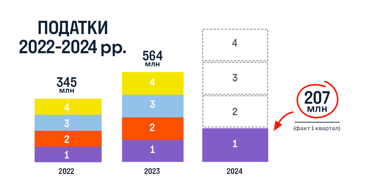 У березні 2022 року однією з перших наших ініціатив була сплата податкового авансу у сумі 5 млн грн. На той момент ми ще не знали, чи вистоїть компанія, але чітко усвідомлювали, що маємо зробити свій внесок аби вистояла країна. Так, у 2022 році ми сплатили 334 млн грн податків, у 2023 році – вже 565 млн грн. А за перший квартал 2024-го сплатили 207 млн грн. Бізнес має йти пліч-о-пліч з державою, бо іншого шляху до перемоги просто не існує.
