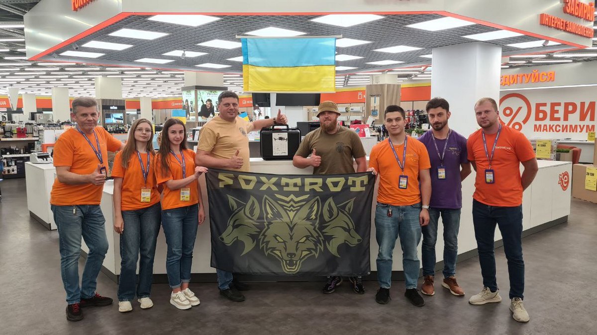 З перших днів повномасштабного вторгнення рф в Україну бізнес Фокстрот системно забезпечує наших захисників необхідною технікою і гаджетами. Створений на початку війни корпоративний штаб «Допомога нашим» надав Силам оборони техніки на понад 35 млн. грн. З найпопулярніших запитів – планшети (під ПЗ «Кропива»), телевізори (працюють як монітори для аеророзвідки та ППО), ноутбуки, принтери і техніка для забезпечення побуту воїнів у польових умовах.