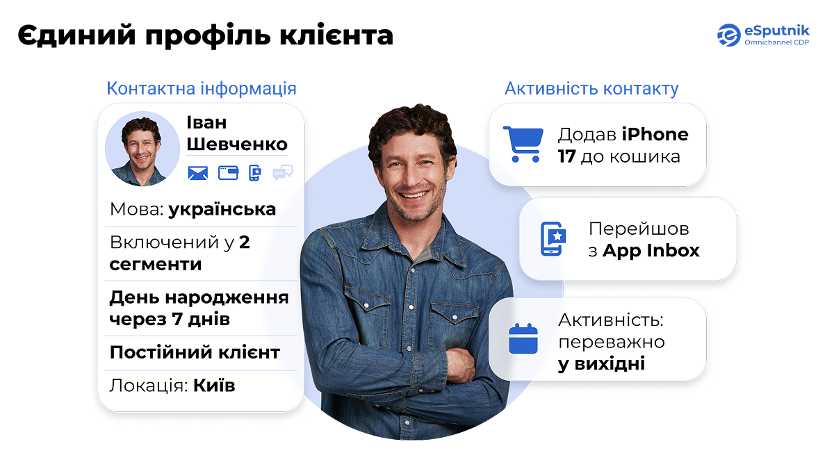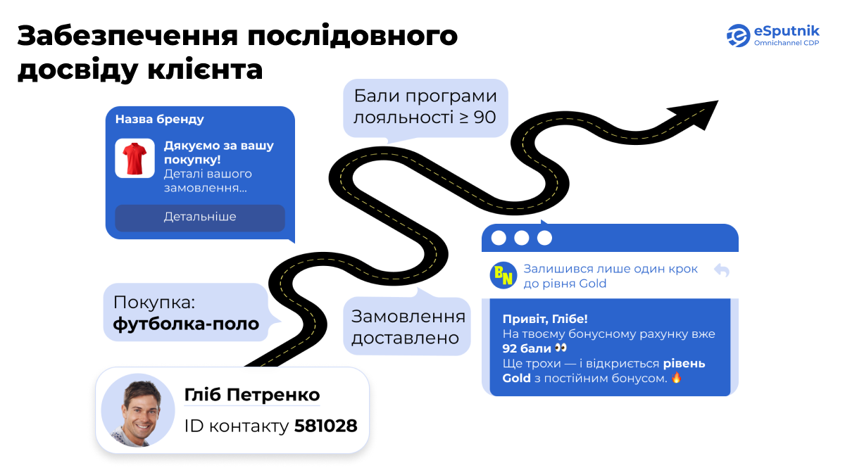 Обʼєднання усіх даних у єдиному профілі дає можливість маркетологам створювати безшовний клієнтський досвід, де кожна взаємодія логічно продовжує попередню. Це працює набагато ефективніше, ніж проста відправка повідомлень.