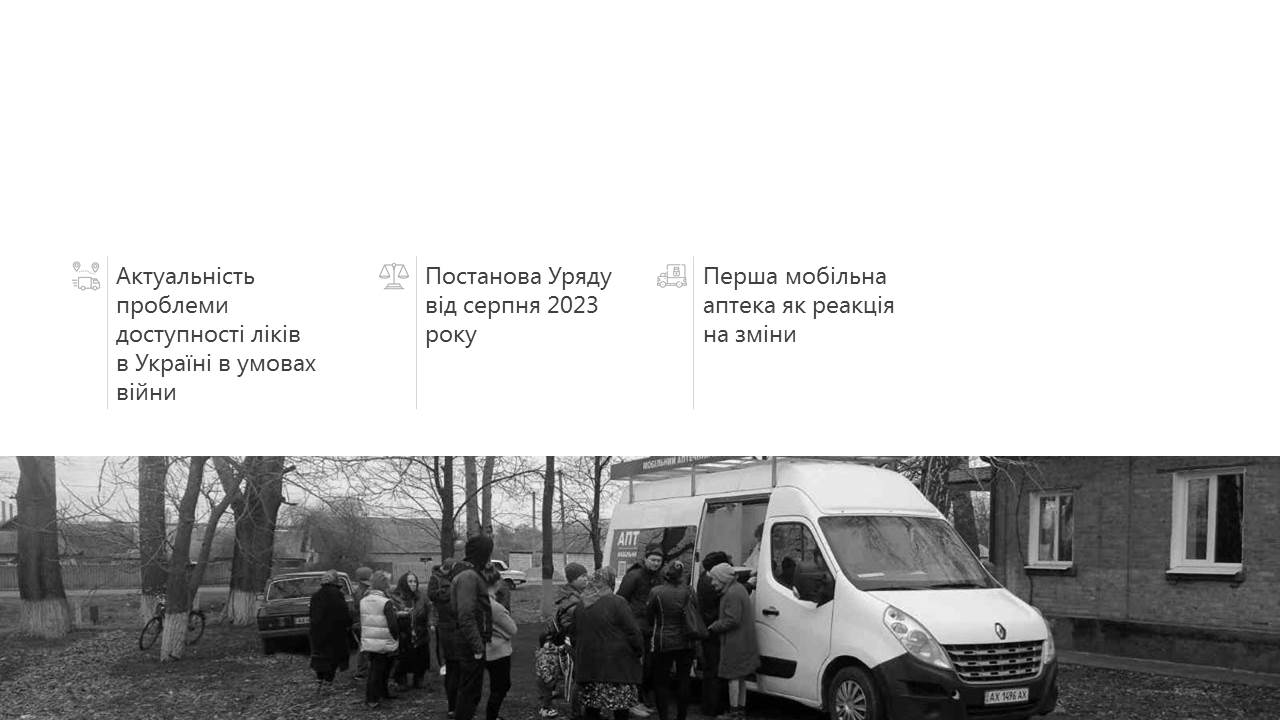 А в серпні 2023 року уряд прийняв рішення щодо змін форматів аптечних закладів і запропонував всім суб’єктам фармацевтичного ринку запроваджувати мобільні аптечні пункти.