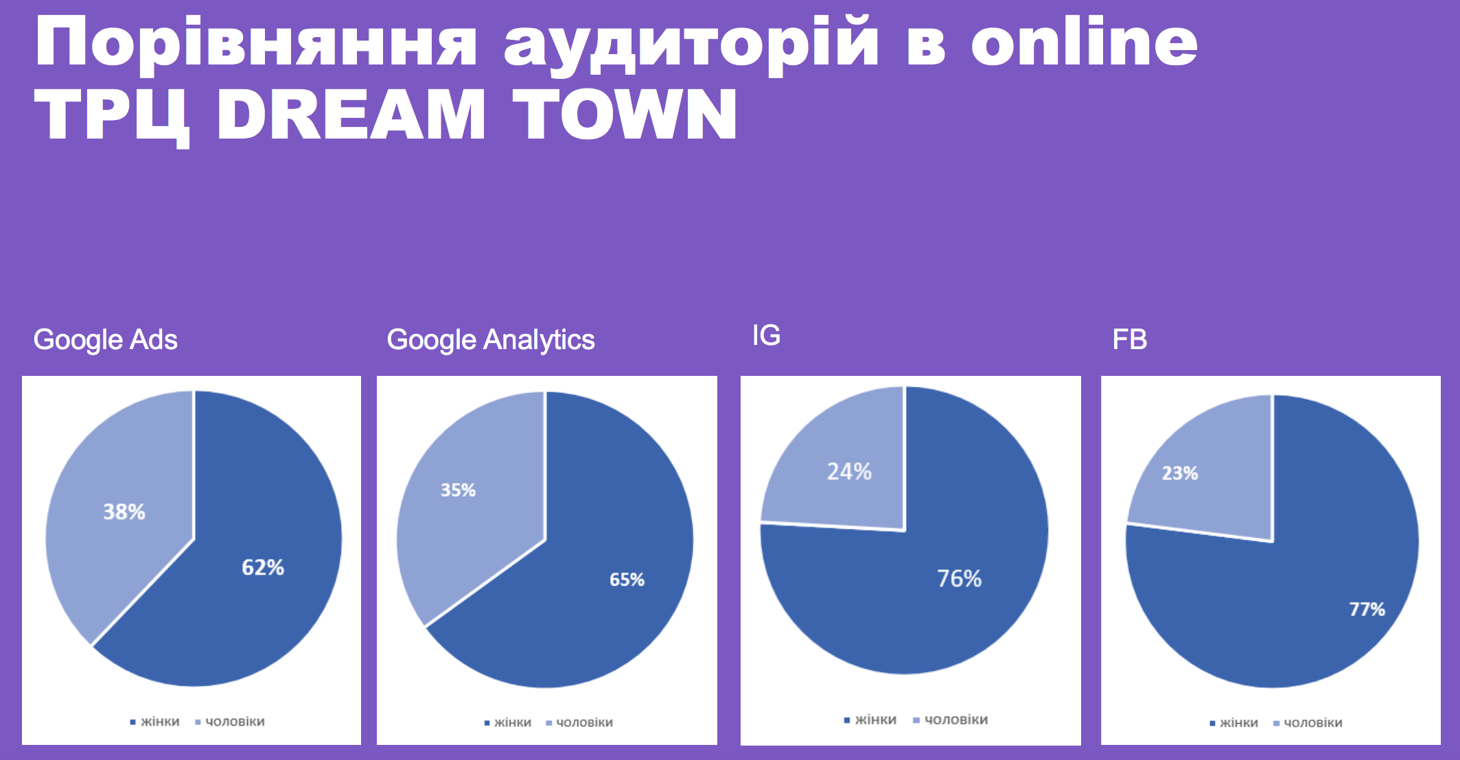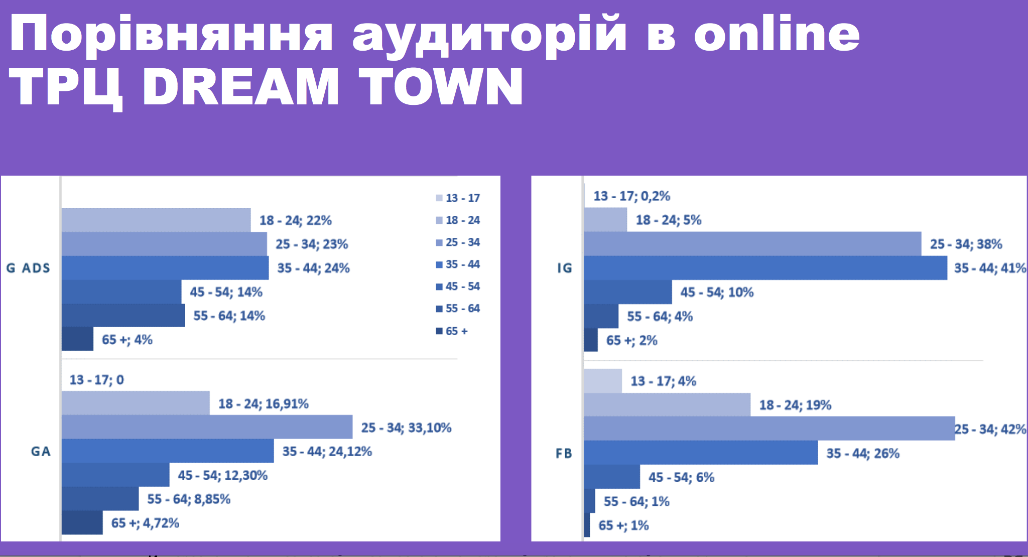 Порівняння аудиторій ТРЦ Dream Town в залежності від каналів