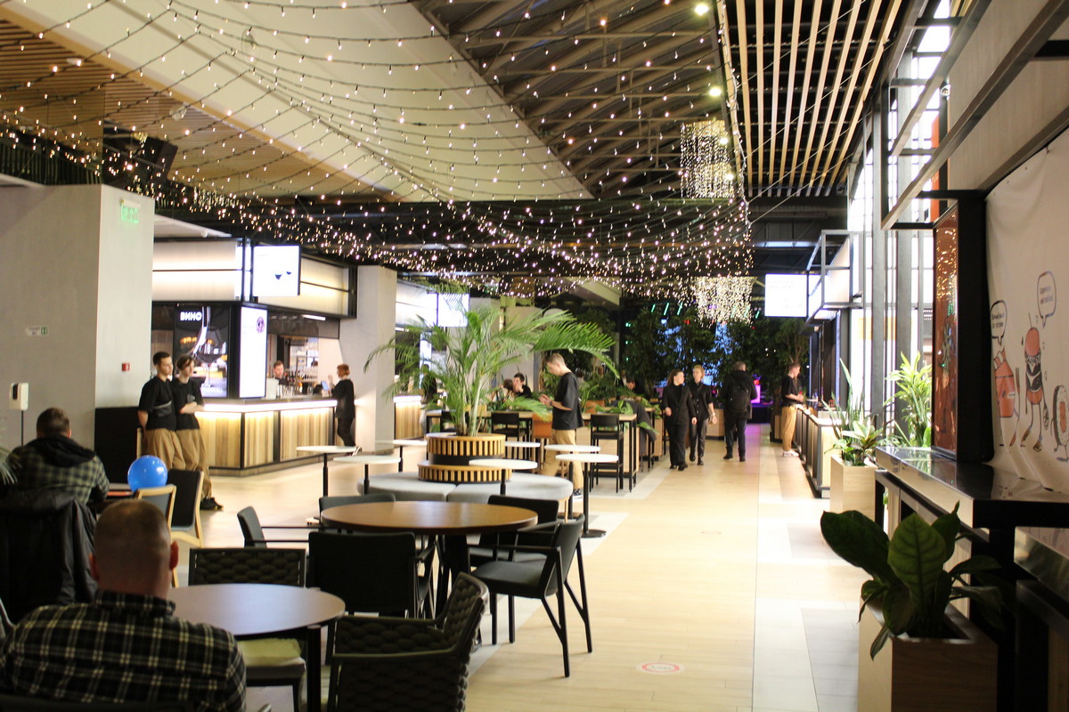 Площа фуд-холу складає білья 6000 кв. м, не враховуючи затишну лаунж-зону на 2+ поверсі – прямо над “кварталами” фуд-операторів.