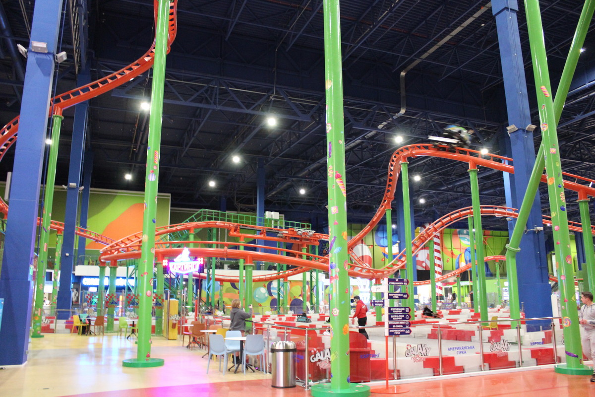 Що доволі зручно: з фуд-холу можно легко вийти як до торговельної галереї, де працюють провідні fashion-оператори, так і до парку розваг Galaxy. Це найбільший в Європі критий парк розваг з найвищими “американськімі гірками” під дахом.