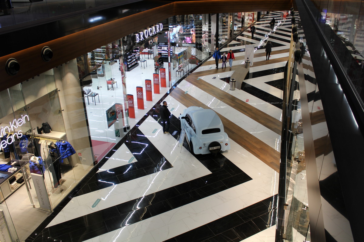 Деякі орендарі здивували неочікуваними креативними рішеннями. Наприклад, інтерактивне оформлення вхідної групи до магазину Anabel Arto.