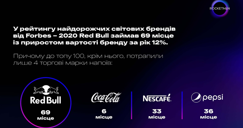 Саме креативність Дітріха Матешица лягла в основу особливого позиціювання та ексклюзивної маркетингової концепції. А наполегливість у її впровадженні створила всесвіт бренду Red Bull, яким ми його знаємо. У рейтингу найдорожчих світових брендів від Forbes – 2020 Red Bull займав 69 місце із приростом вартості бренду за рік 12%. Причому до топу 100, крім нього, потрапили лише чотири торгові марки напоїв: Coca-Cola (6 місце), Nescafe (33 місце) та Pepsi (36 місце).