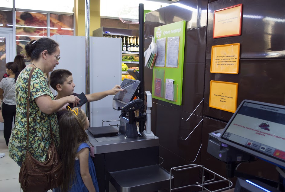 Одне з болючих для кожної компанії сфери роздрібної торгівлі питання – черги в пікові години та брак касирів. Вирішити ці питання допомагає установка кас самообслуговування – терміналів, де покупець може розрахуватися за товари без допомоги персоналу. Клієнти самостійно сканують товари, оплачують покупку готівкою або карткою, забирають чек і йдуть. Закони України вимагають перевірки документів при купівлі тютюнових виробів і алкоголю, тому в магазинах є асистент, якого можна викликати на касу натисканням кнопки.