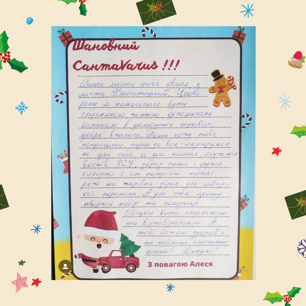 САНТАVARUS отримав понад 400 неймовірних листів із різноманітними побажаннями та проханнями, які здебільшого були оформлені новорічно-різдвяними малюнками. Цьогоріч повідомлення від українських діток серед звичних замовлень містять й особливі побажання для України та наших захисників.