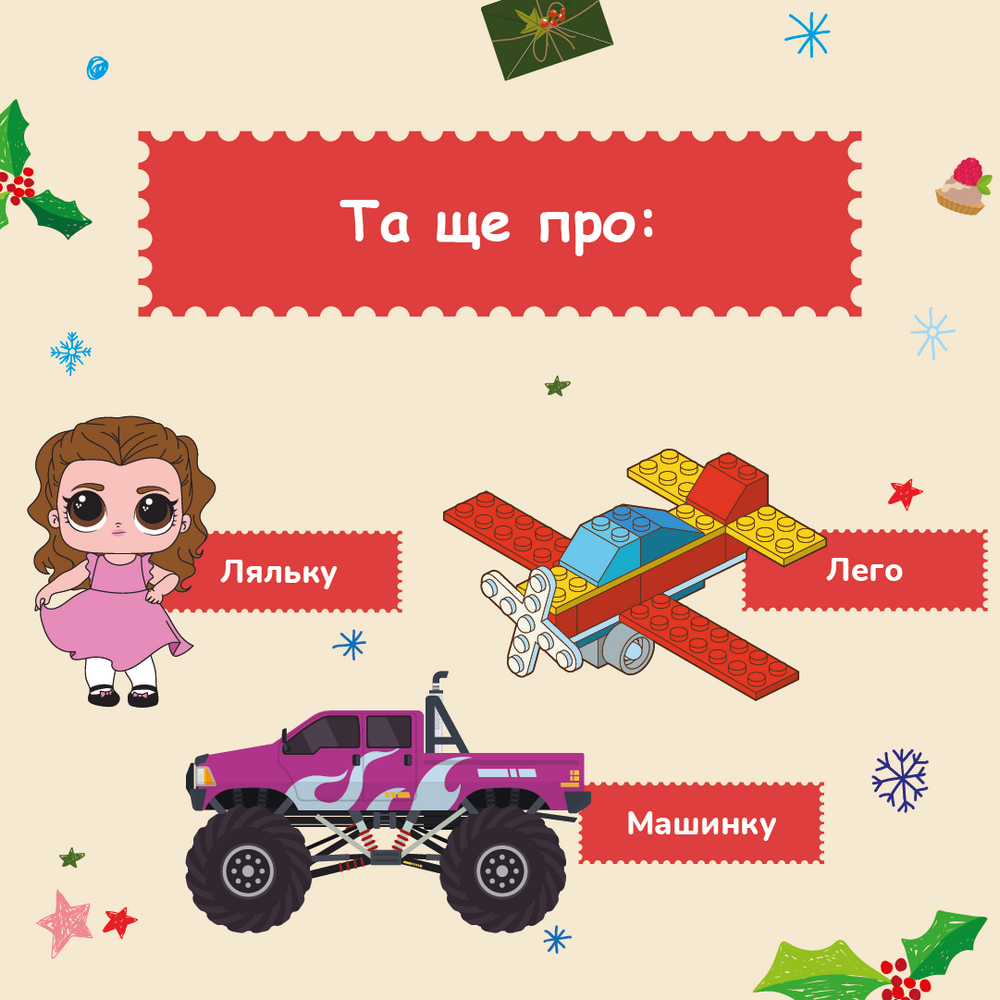 Серед популярних очікувань також були, звісно, й іграшки, адже попри війну, дитинство залишається дитинством, – ляльки, конструктор Lego, машинки тощо. Чимало й тих, хто мріє про повернення додому – в своє звичайне життя.