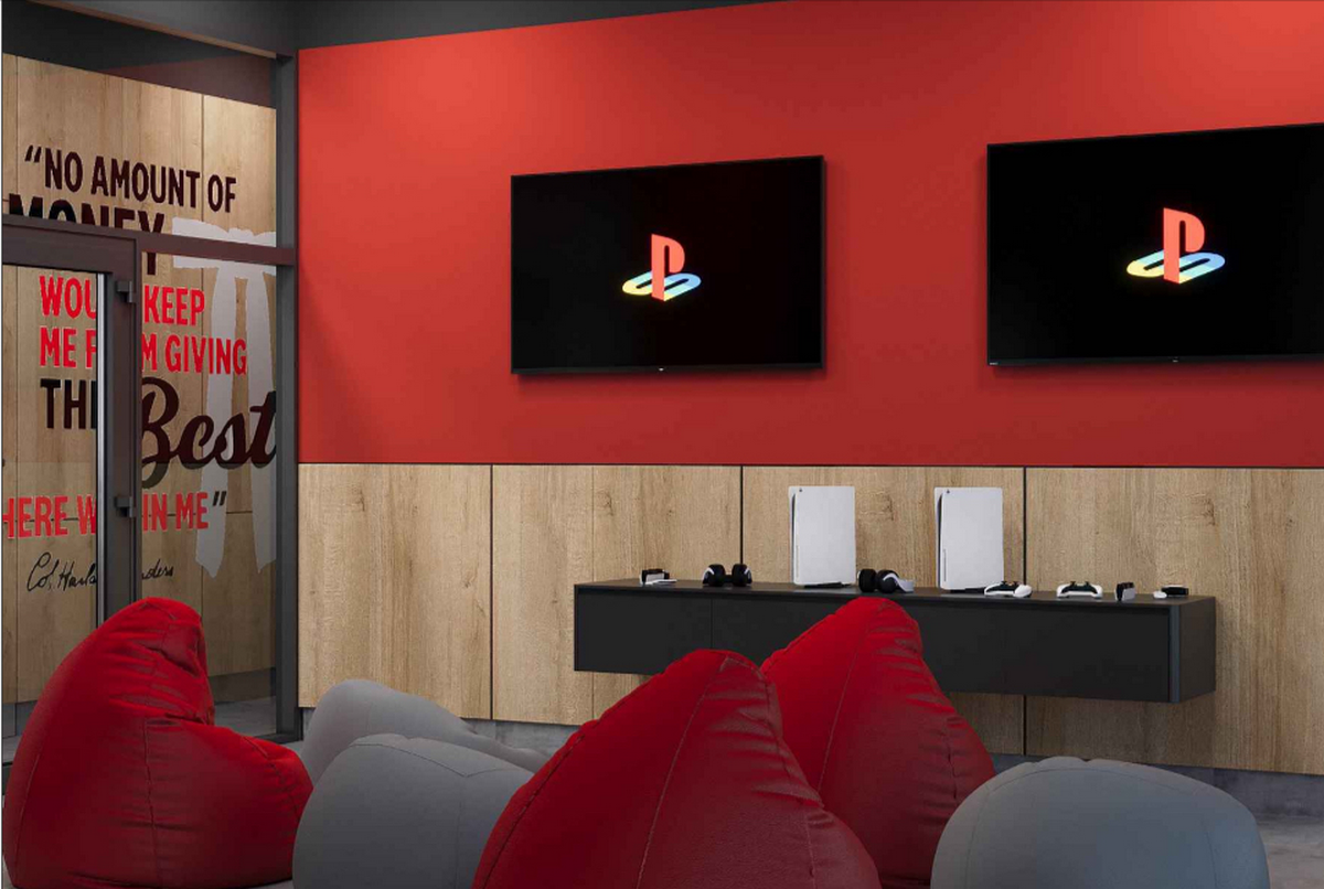 Унікальною особливістю став Game-простір на другому поверсі — перший такий формат у мережі KFC в Україні. Зручні крісла-мішки, PlayStation та ігрова атмосфера формують окрему зону для молоді та гостей, які хочуть не лише поїсти, а й цікаво провести час. На тестовий період діють правила: від чеку 400 грн — 30 хвилин гри, від 500 грн — 45 хвилин.