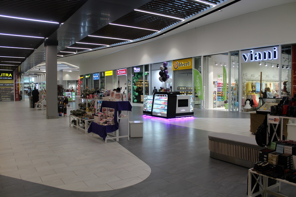 У перший день роботи в торгово-розважальному комплексі, крім уже згадуваних Novus і Leroy Merlin, відкрилися магазини алкогольних напоїв та пива Litra, продавець техніки й електроніки Eldorado, Аптека Доброго Дня, Vodafone, Lifecell і Kyivstar, Tabakerka, Funduk Sunduk, Roshen, Tutto Gusto, Novodom і Spice room тощо.