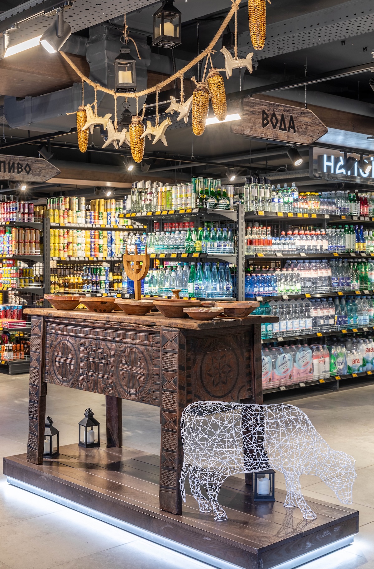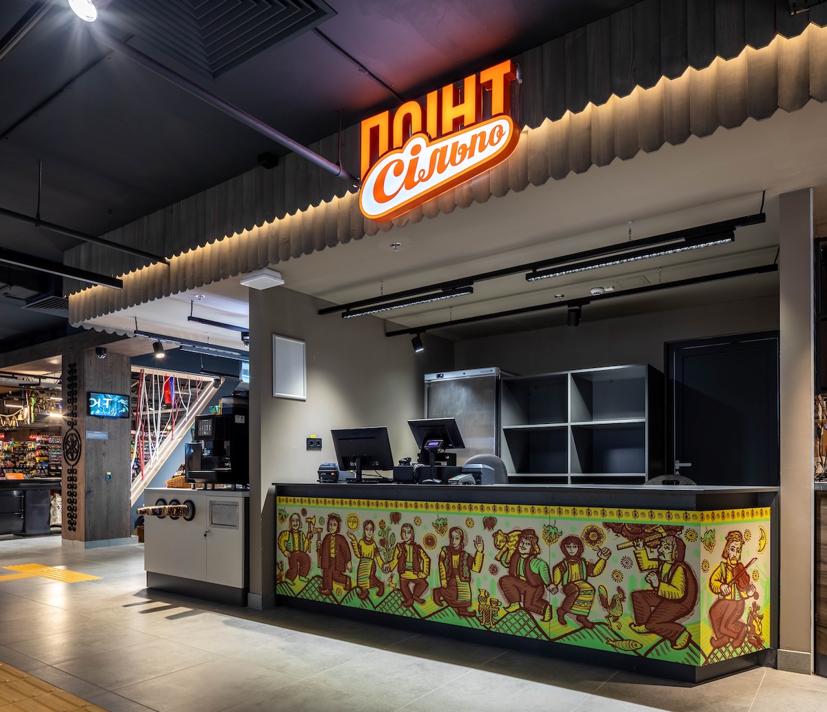 Кулінарна зона пропонує традиційні карпатські страви від місцевих ґаздинь, випічку та свіжі готові страви. Продукти можна замовити з доставкою у сусідні населені пункти, зокрема Ворохту, Яблуницю та Яремче. У цій локації супермаркет уперше став виставковим простором, де дизайн і асортимент працюють разом як єдиний комплекс.