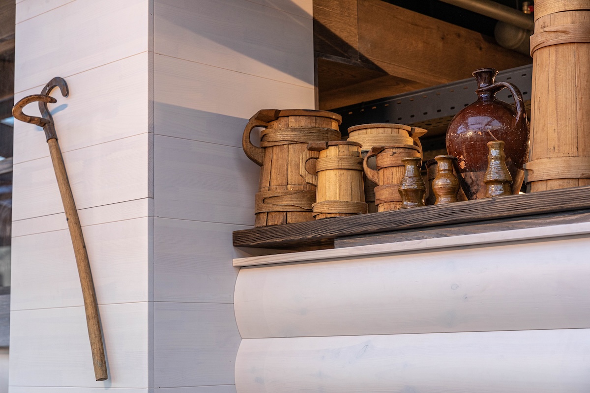 Щоб глибше дослідити тему, команда вирушила в експедиції до Косова, Коломиї та Криворівні, де знайомилась із майстрами, які зберігають давні ремесла, і надихалась місцями, де знімали “Тіні”. Цей підхід дозволив створити десять тематичних зон, які проводять відвідувачів крізь ключові сцени фільму. У кожній зоні оживають переосмислені образи зі стрічки, як-от ярмо зі сцени вінчанння — символ шлюбу за домовленістю, чи вогняні коні — алюзія на культову сцену смертельного поранення Петра Палійчука. Біля Гастрономії здіймаються трембіти — нагадування про музичний внесок народних музик і композитора Мирослава Скорика. Поруч — справжні артефакти оспіваної гуцульської культури: автентичний посуд, свічники-трійці, предмети побуту й меблі. Їх команда Сільпо знайшла під час експедицій до Коломиї та Косова. А над усім — знакові фрази з фільму, що світяться червоним неоном, мов багряні титри стрічки.