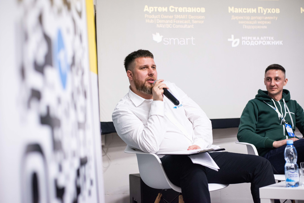 Далі з темою «AI революція. Як змінюються правила гри в бізнесі» виступив Артем Степанов, Product Owner SMART Decision Hub | Demand Forecast, Senior NAV/BC Consultant. Компанія SMART business протягом 15 років допомагає клієнтам будувати інноваційний бізнес, впроваджуючи передові рішення побудовані на базі AI та сучасних технологій, зокрема Copilot, Power Platform, Dynamics 365, Microsoft 365. Перед доповіддю Артем попросив учасників пройти тест з 12 запитань, щоб визначити, які теми про ШІ варто розглянути більш детально.