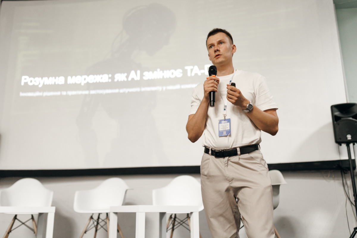Перший блок презентацій завершив Артем Попов, керівник відділу AI Research мережі TA-DA! Він виступив з темою: «Штучний інтелект і його можливості для маркетингу». Спікер зауважив, що ШІ швидко еволюціонує та розвивається. Буквально кожен тиждень з’являється щось нове. У сучасному світі неможливо вже відмовитися від ШІ та потрібно постійно слідкувати, щоб встигати тестити нові моделі. Також Артем Попов звернув увагу, якщо ШІ має видати дійсно правильну відповідь, ту, яку від нього очікують, тоді і запит не має бути поверхневим. Треба описати своє питання чи запит максимально детально та навести приклади. Тоді і відповіді будуть набагато релевантніші.