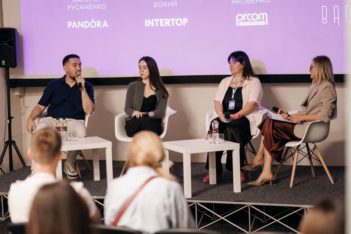 Далі – панельна дискусія, в якій взяли участь Антон Бокий, Chief Marketing Officer Intertop, Валерія Русаненко, Chief Marketing Officer Pandora в Україні, Ольга Рогозіна, CEO BAO Group (BAO, BAO Lviv, NAM, Georgia) та Олена Яковенко, керуюча партнерка Prcom. Основна тема дискусії – чому бренди об’єднуються в колаборації, як обрати «свого» інфлюенсера та як вимірюють ефективність колаборацій.