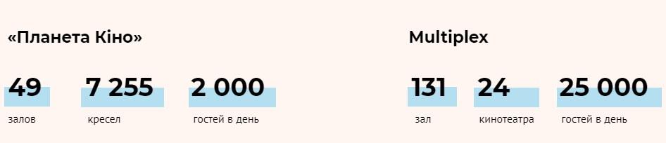 Про те, яким був прибуток «Планети Кіно» в 2017 році власники говорити відмовилися, однак додали: виручка за минулий рік склала 600 млн грн. У мережі Multiplex на запит AIN.UA не надали фінансові дані, але повідомили, що в 2017 році було продано 10 млн квитків. (За їхніми ж даними, всього в країні в 2017 році було продано 29 мільйонів квитків, а сумарний бокс-офіс склав 2,2 млрд грн).