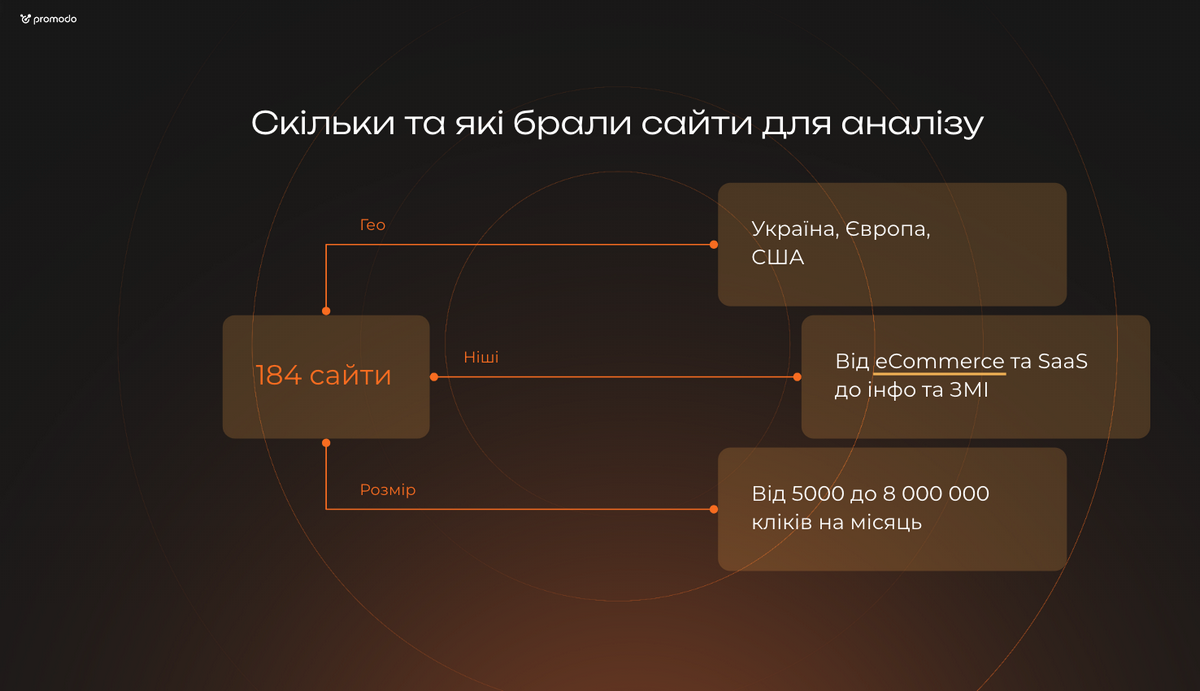 Також під час аналізу команда Promodo побачила багато випадків з аномальними стрибками по деяких сайтах. Прослідкувати певну залежність не вдалося: це були різні ресурси за обʼємом трафіку та з різних ніш. Відтак під час планування маркетингової стратегії рекомендують звіряти дані у кількох сервісах. Це значно зменшить вірогідність аномально високої похибки.