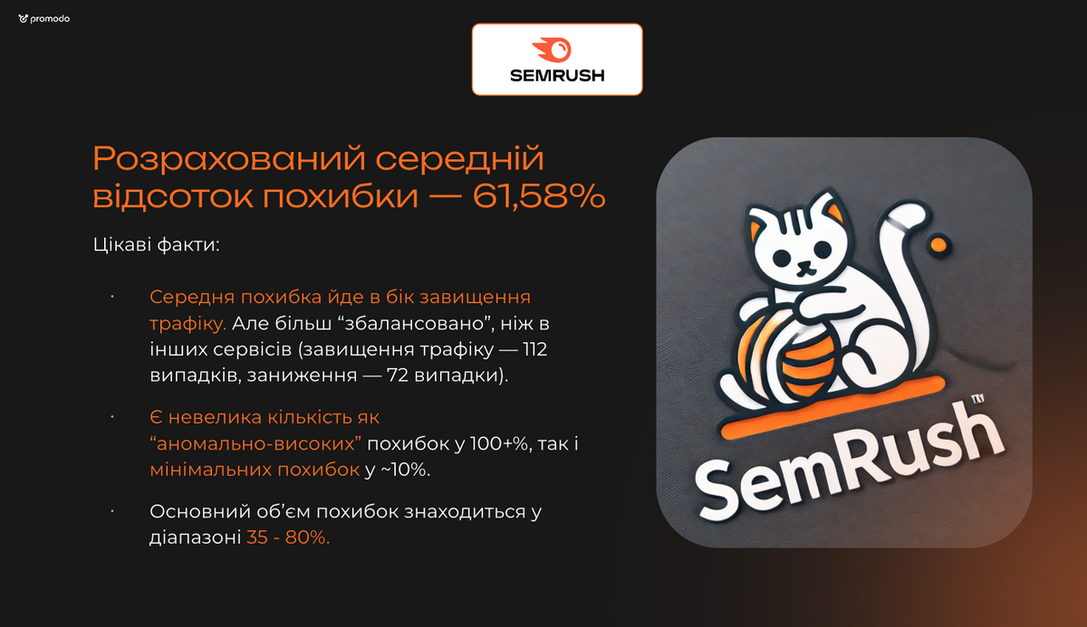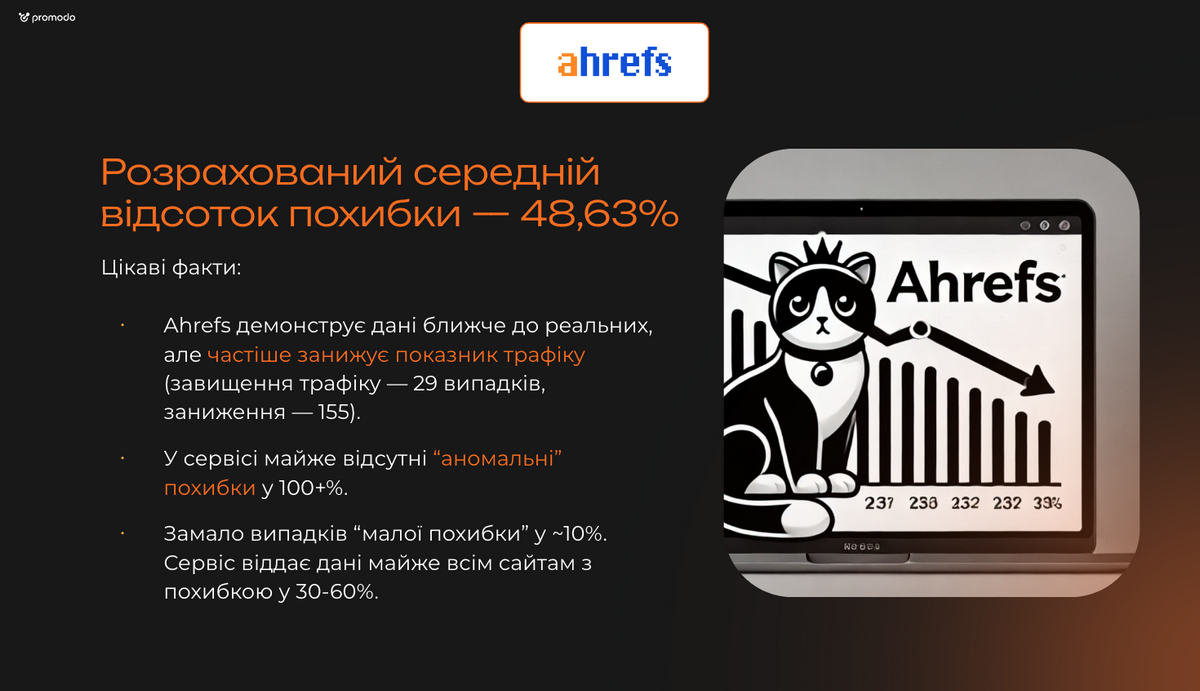Усереднений відсоток похибки за всіма сервісами (Ahrefs, Similarweb, Semrush) — 50%.
