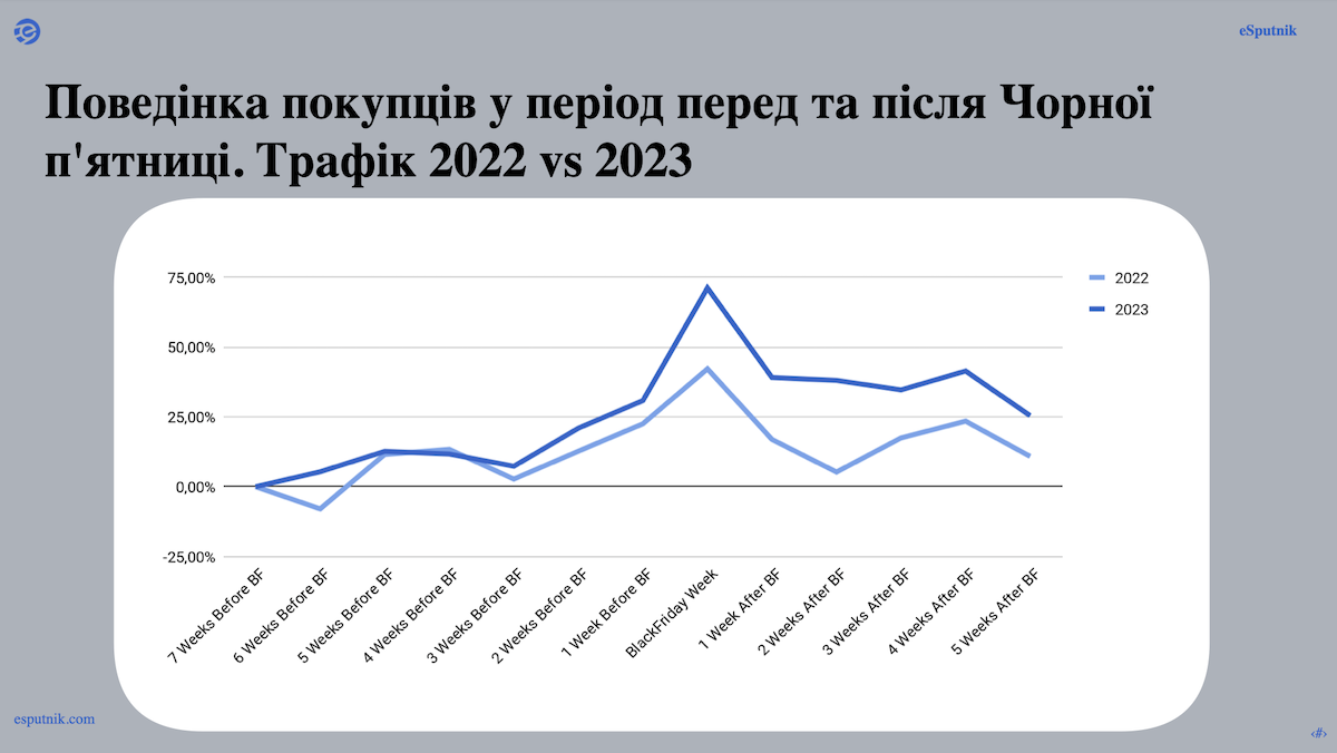 Поведінка покупців у період перед та після Чорної п’ятниці. Трафік 2022 vs 2023