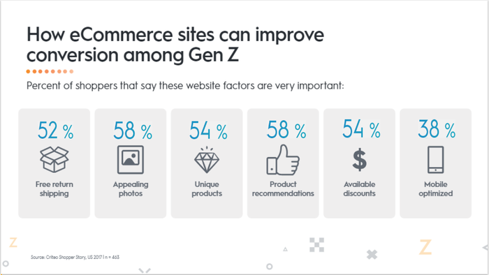 «Зети» зізнаються, що сучасні реалії e-commerce їх не задовольняють: 45% стверджують, що їм складно онлайн знайти товар по душі, 43% говорять, що їм не так кофмортно купувати в інтернеті. В цілому покоління Z можна назвати самим незадоволеним поколінням з усіх. Що можуть зробити рітейлери, щоб залучити пост-миллениалов і підвищити їх почуття задоволеності?