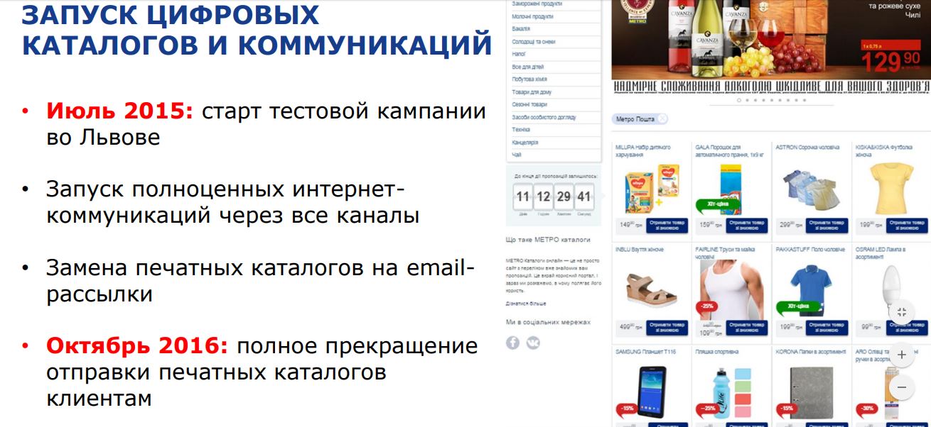 До 2014 року включно основним каналом комунікації Metro Cash & Carry Ukrainе з клієнтами були друковані каталоги. За базі активних клієнтів компанія розсилала каталоги поштою, але що далі відбувалося з цими каталогами, дізнатися було неможливо. Коли питали людей, вони відповідали, що люблять друковані каталоги і хочуть їх отримувати та далі. Але найбільше мотивували людей прийти в магазин акційні пропозиції – тобто інформація, яка розміщувалася в каталогах.