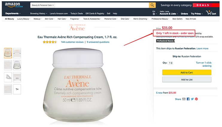Цей принцип активно використовує Amazon, мотивуючи користувачів здійснювати замовлення якомога швидше, поки товар ще є в наявності.