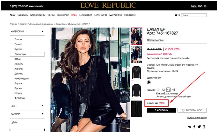 Цим же способом користується багато інших рітейлерів, при цьому не завжди обов’язково вказувати точну кількість, наприклад, інтернет-магазин Love Republic використовує варіанти «багато», «є» або «мало», щоб показати наявність товару на складі. Коли покупець бачить, що товар практично розпроданий, це стає додатковим стимулом до здійснення покупки.