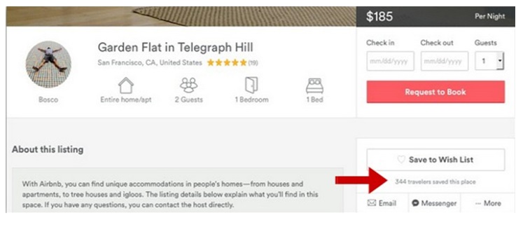 Компанія Airbnb як соціального доказу показує кількість мандрівників, що додали готель собі в закладки.