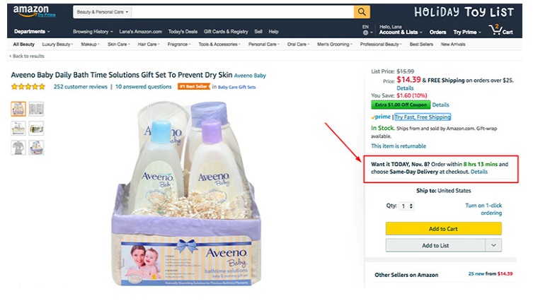 Способ №5. Обмеження часу покупки, мотивоване швидкою доставкою