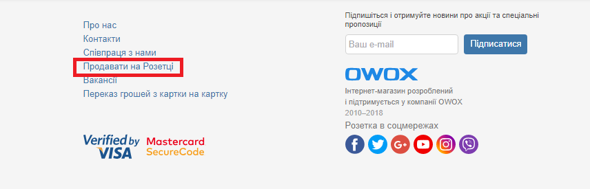Щоб заповнити анкету продавця, потрібно зайти в розділ «Продавати на Розетці» і заповнити заявку для реєстрації продавця.