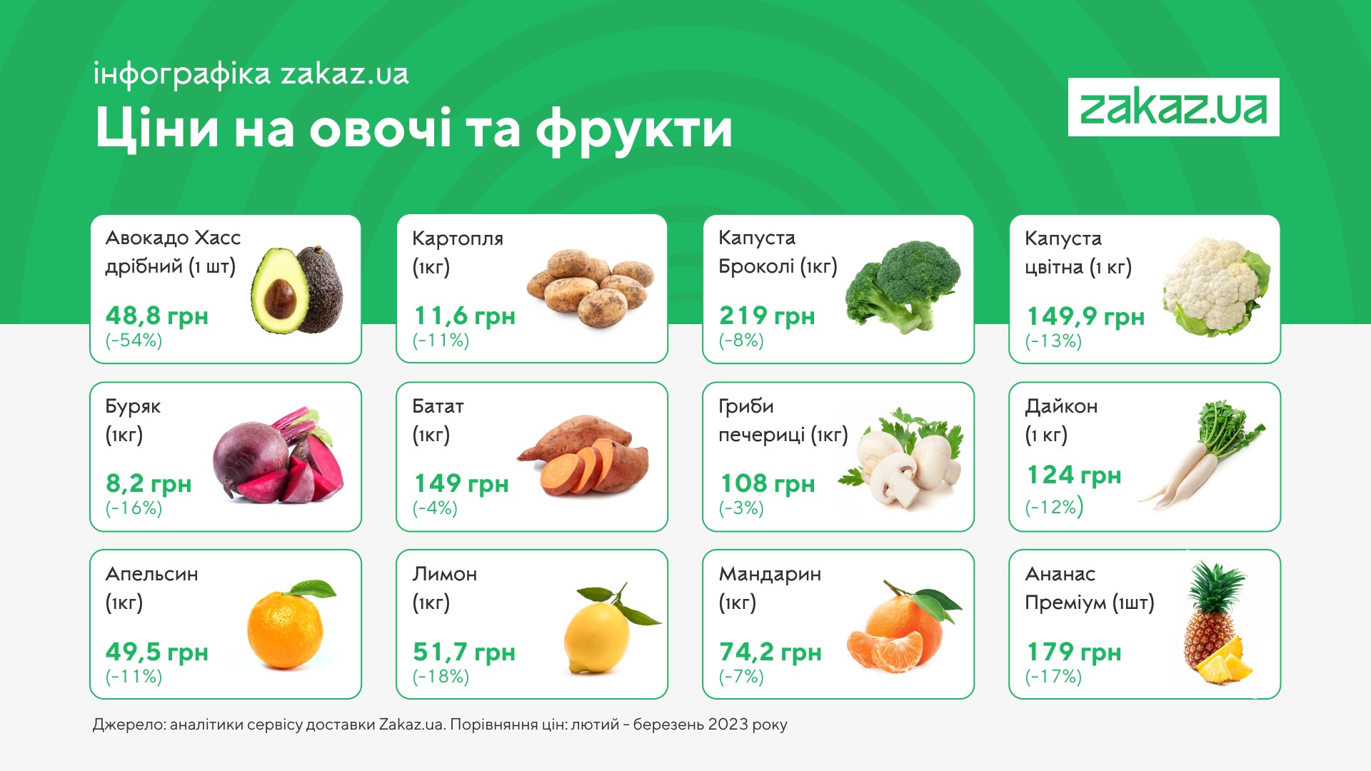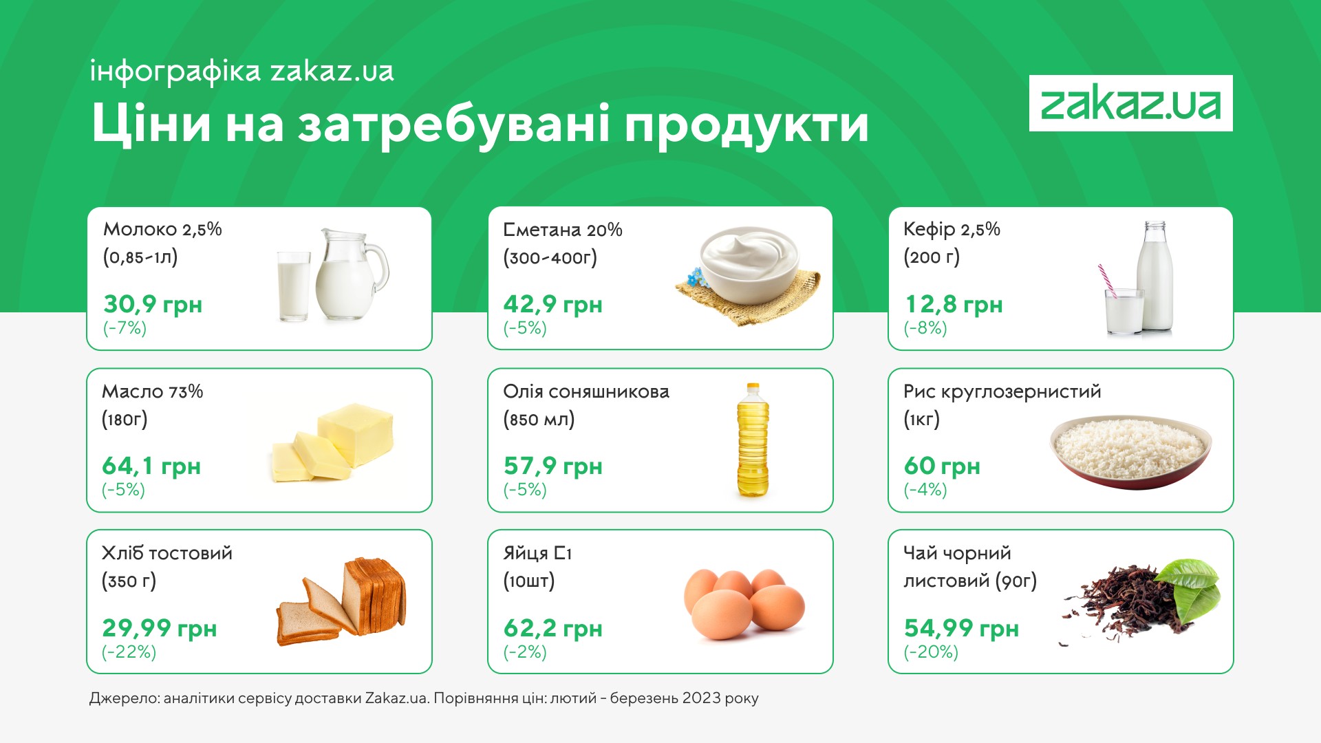 Які продукти у березні стали коштувати дешевше на полицях супермаркетів – інфографіка Zakaz.ua