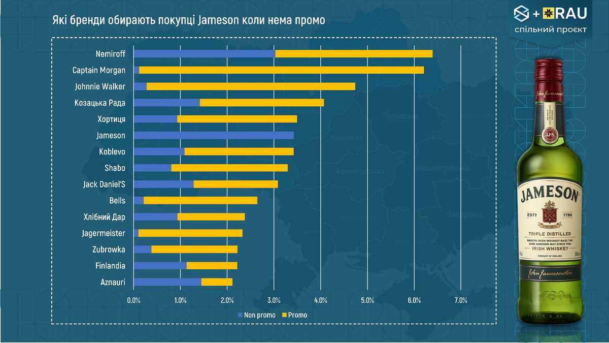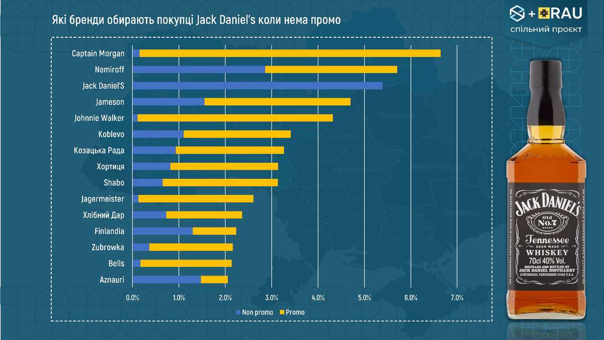 Варто відмітити, що з усіх брендів які змогли дослідити тільки Jack Daniel’s і Jameson мають свою дуже стабільну аудиторію, яка купляє напої, навіть коли акції закічнуються.