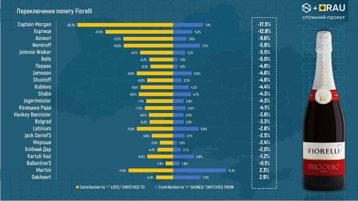 Покупці ж Fiorelli вподобали більше Captain Morgan, але також часто переключалися на горілку Хортиця, Nemiroff, Первак. Хоча так само готові були пити й Johnnie Walker, Bell’s та Aznauri.