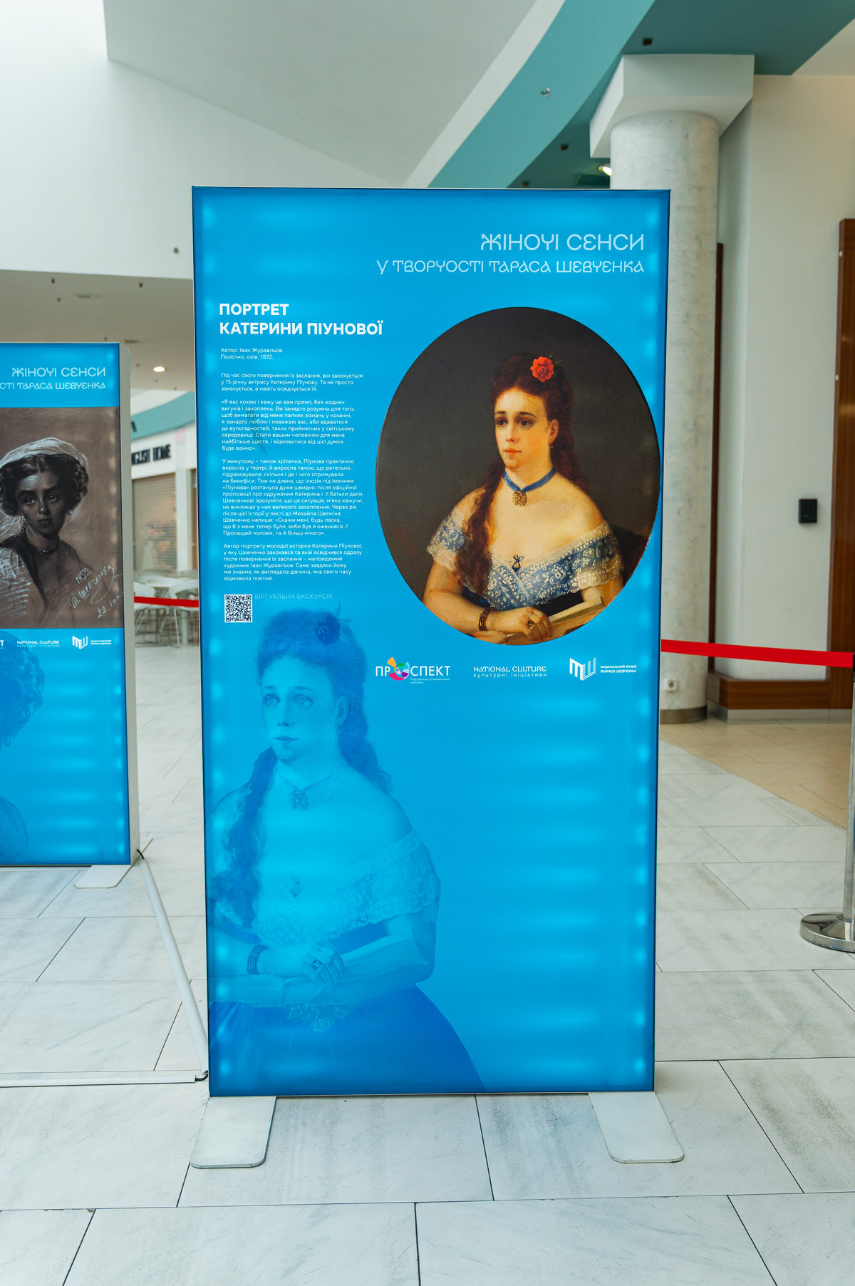 Щоб надати гостям можливість глибше зрозуміти історію кожного витвору митця, ТРК Проспект створив спеціальні відеоекскурсії з Вірою Літовчук – шевченкознавицею, представницею Національного музею Тараса Шевченка. Відсканувавши QR-коди, відвідувачі можуть перенестися в атмосферу музейних залів та по-справжньому захопитися унікальними маловідомими фактами життя Шевченка та жінок, зображених на картинах.