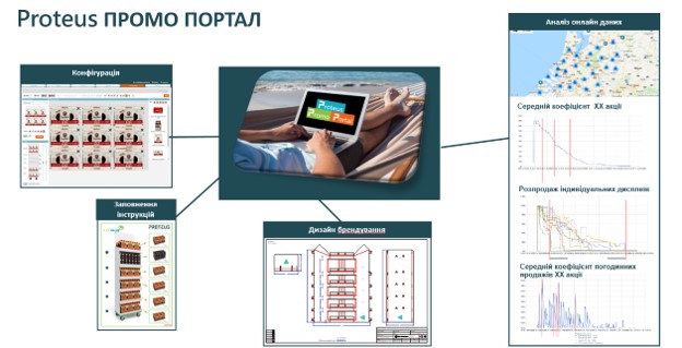 Що ж технологічного у цьому дисплеї? Proteus має Big Data & IoT технологію, а також Out of stock систему. Цей тандем надає повний контроль над функціонуванням стелажа через хмарні рішення. Ви отримуєте щотижневі звіти, слідкуєте за своїми промо-акціями, а також система повідомляє вам: коли потрібно наповнювати полиці товаром!