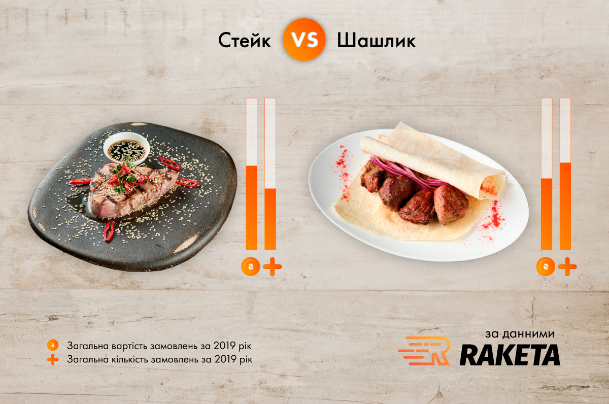 І продовжуючи тему грузинської кухні, шашлик далеко попереду стейків. Принаймні за кількістю замовлень, тоді як стейк, найчастіше, обходиться дорожче порції шашлику.