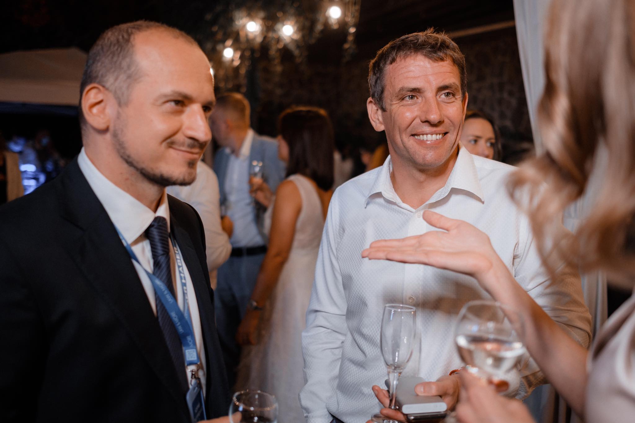 Юрій Петренко (Ader Haber) та Ігор Плохов (Budhouse group) зачаровані розмовою з прекрасною леді