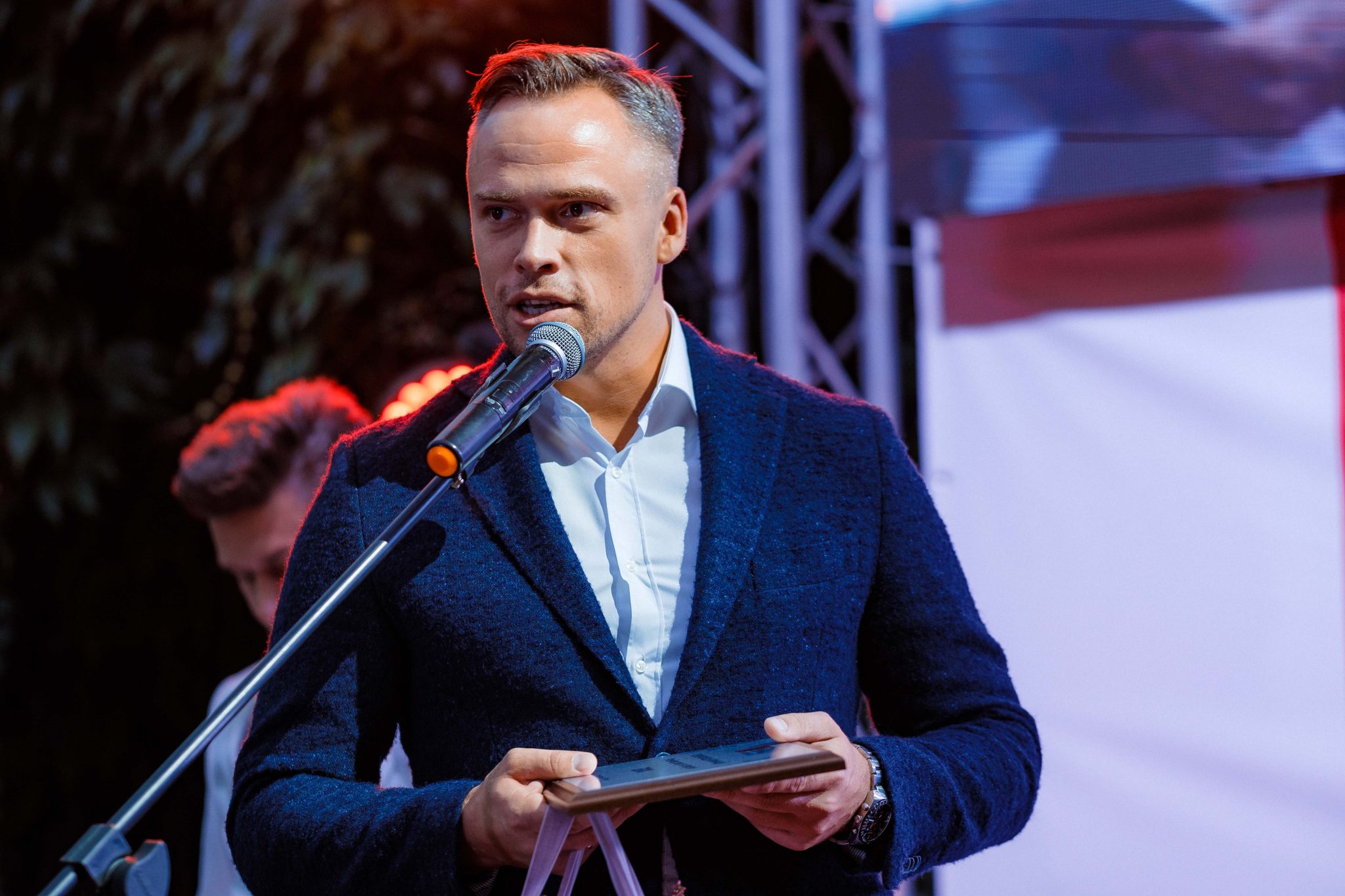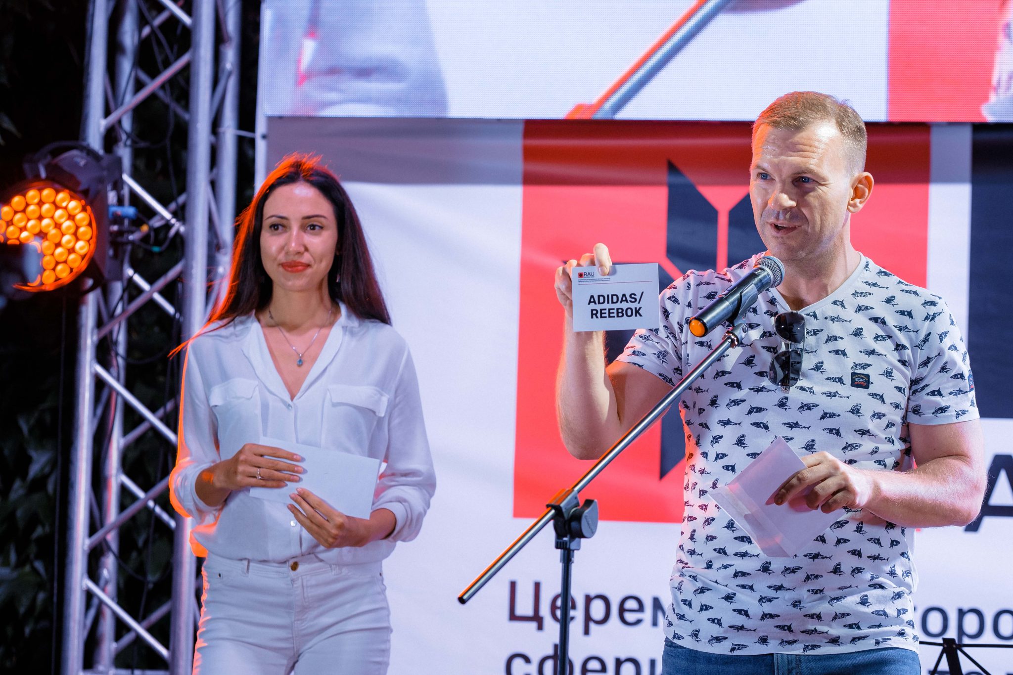 Керуючий директор ТРЦ Dream Town Роман Ємець оголошує переможця в номінації “Рітейлер року в сегменті спортивного одягу та взуття”